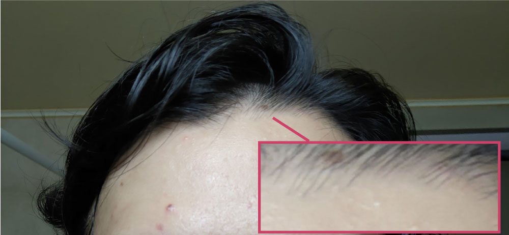 そこから3年くらい過ぎたある日、おでこの生え際を凝視して見つけました。