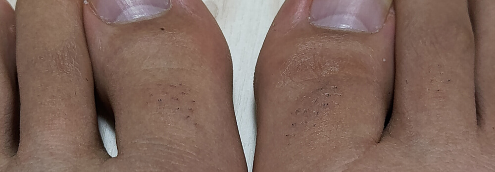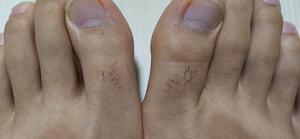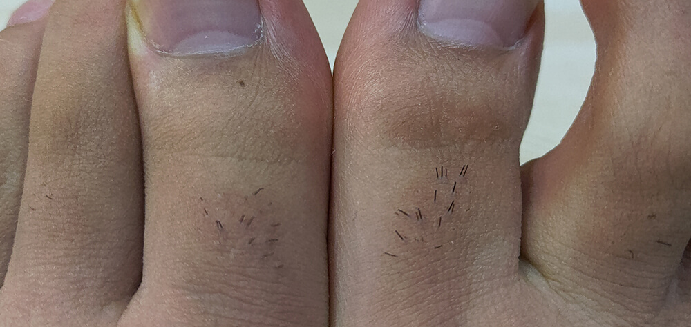 対照実験で使う足の指の毛の状態です。