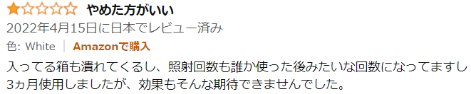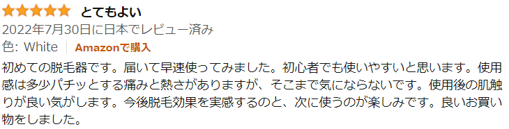 コメントをざっくり見てみると、低評価は性能というより配送や中古っぽいものが送られてきたことによる不満が多いものの、全体でみると効果がないというコメントはほぼなく、効果があった、というコメントの方が多いように思いました。ただし、髭への効果は薄いようです。