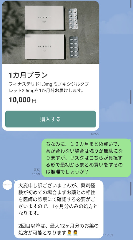 個人輸入サービスはまだ使うのが恐かったので、AGA専門クリニックで薬が安いところを探したところHAIRTECT(ヘアテクト)を発見しました。サービス自体のレビューが少なく少々不安でしたが、人身御供となり皆様にレビューできるよう実際に使ってみました。
