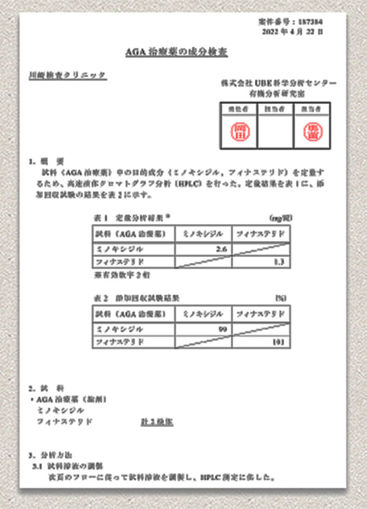 どうやら処方しているフィナステリドとミノキシジルの錠剤について成分検査を行ったようです。
