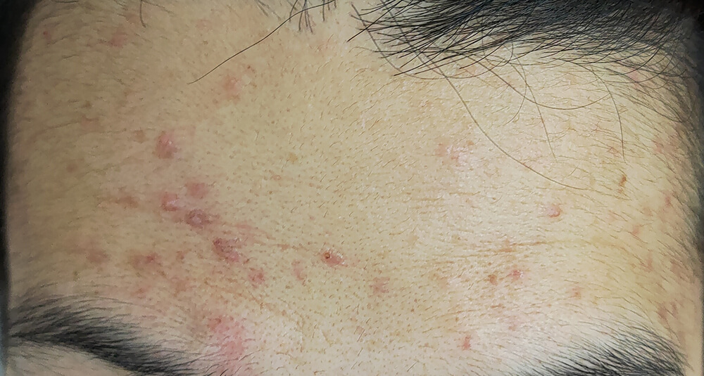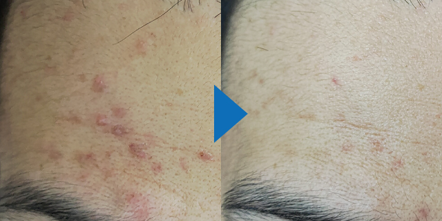 塗るタイプの発毛剤を使い始めて、おでこに薬がついたりする影響かニキビがすごい勢いで増え始めました。